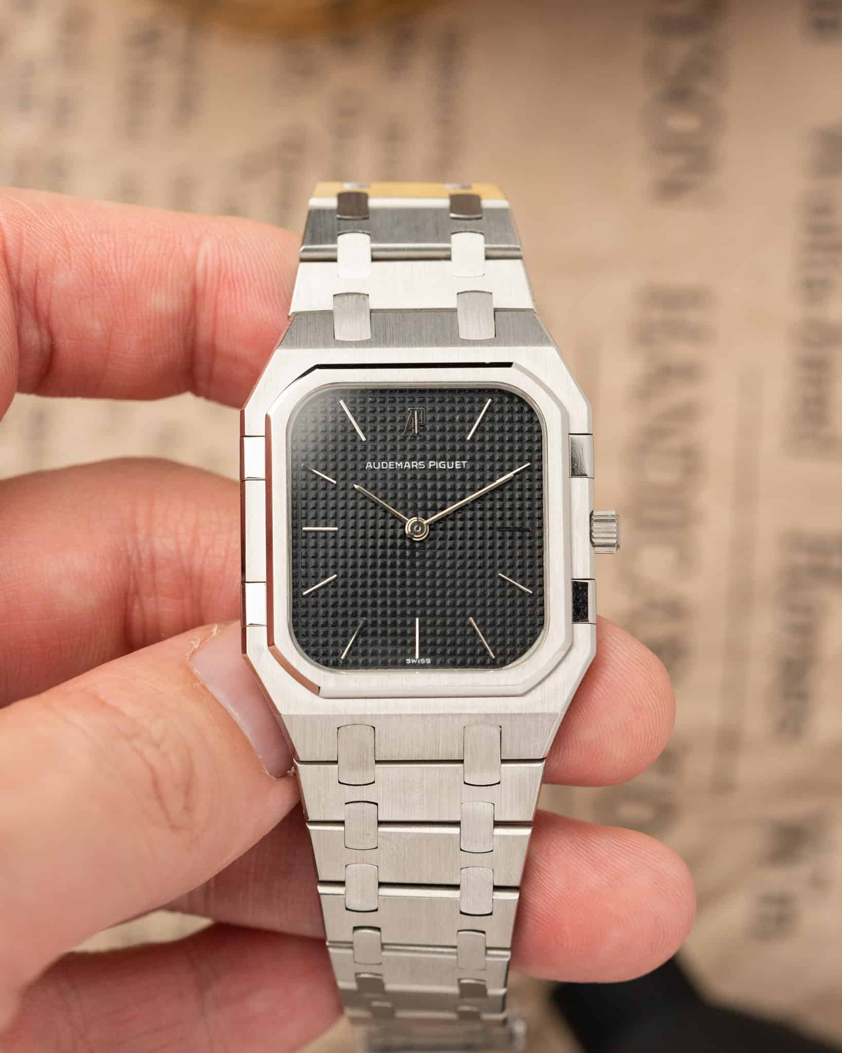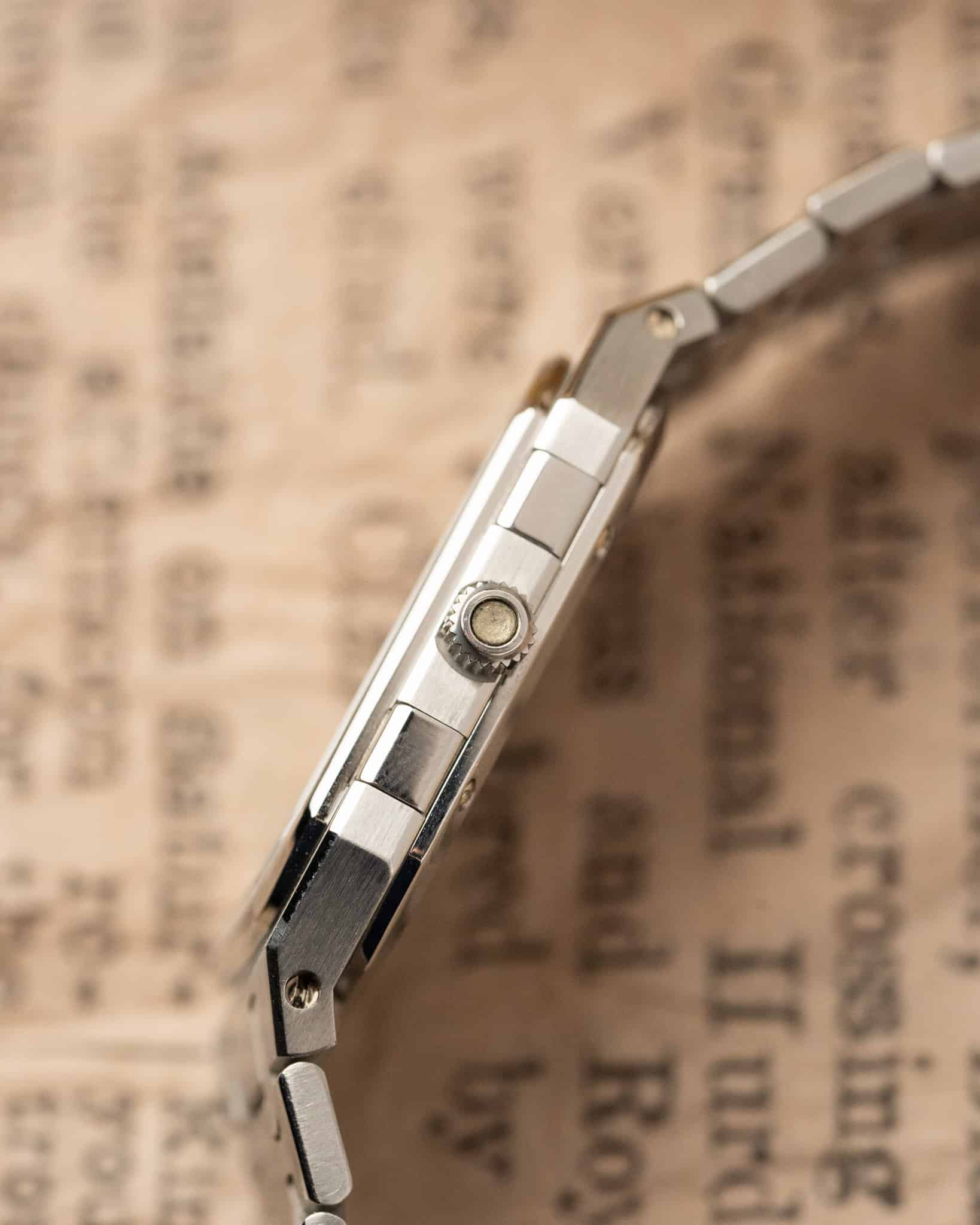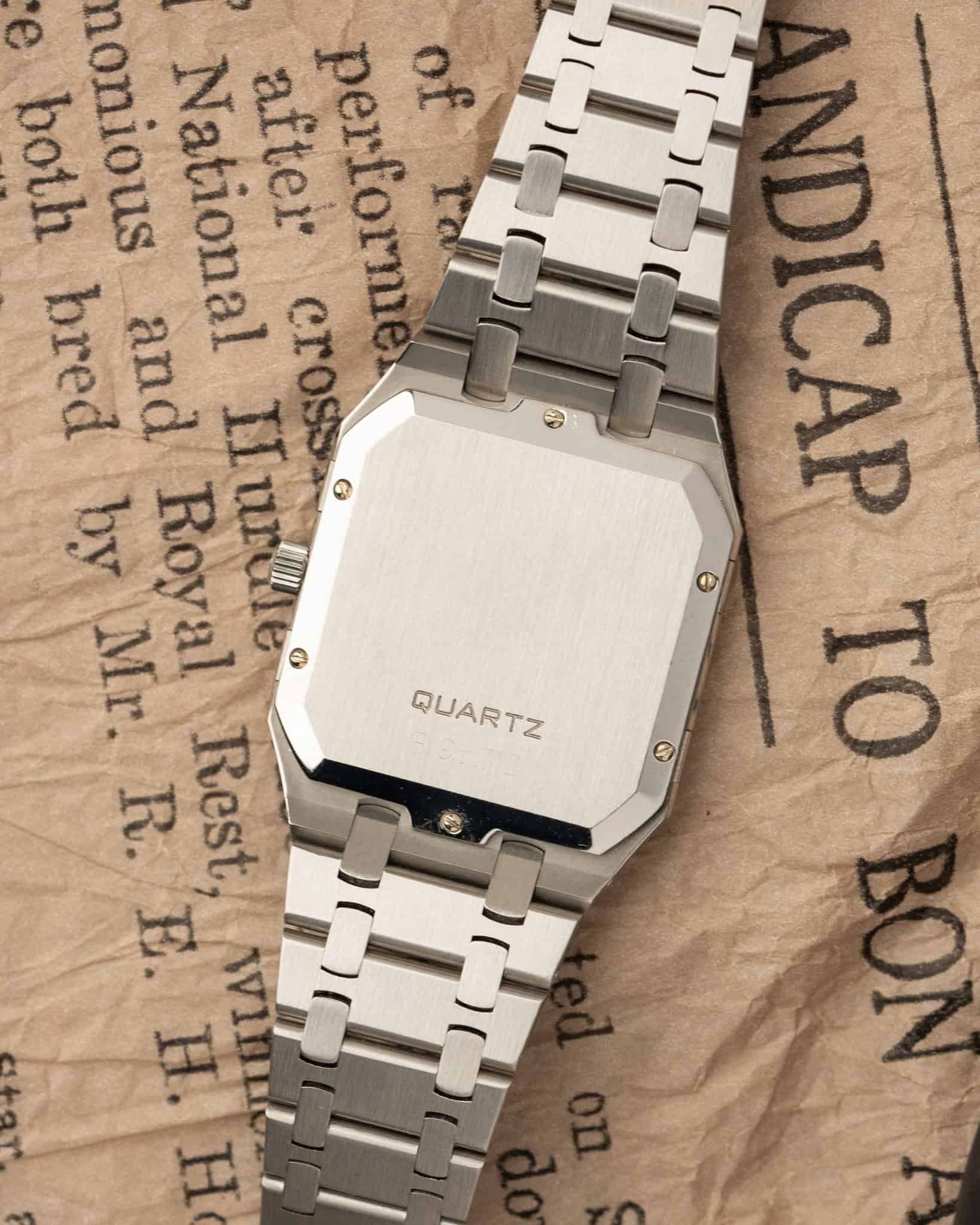 Despite featuring a large, brutalist case and an integrated bracelet in the same design language as the octagonal Royal Oak, the Ref. 6005 was never officially named as such; instead, it bore the simple ‘Quartz’ designation. It was part of the brand’s ‘Quartz Line,’ which continued until at least 1985.