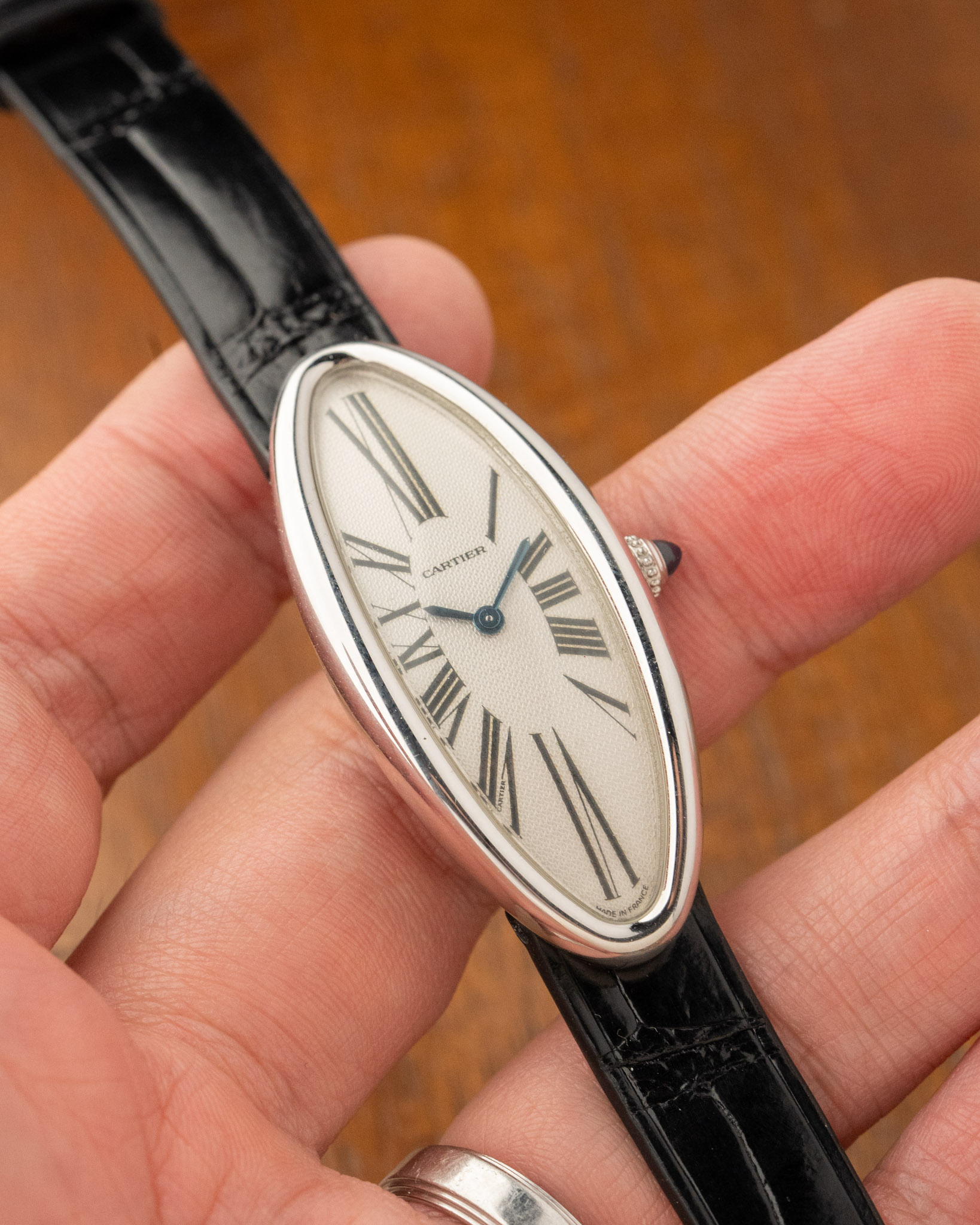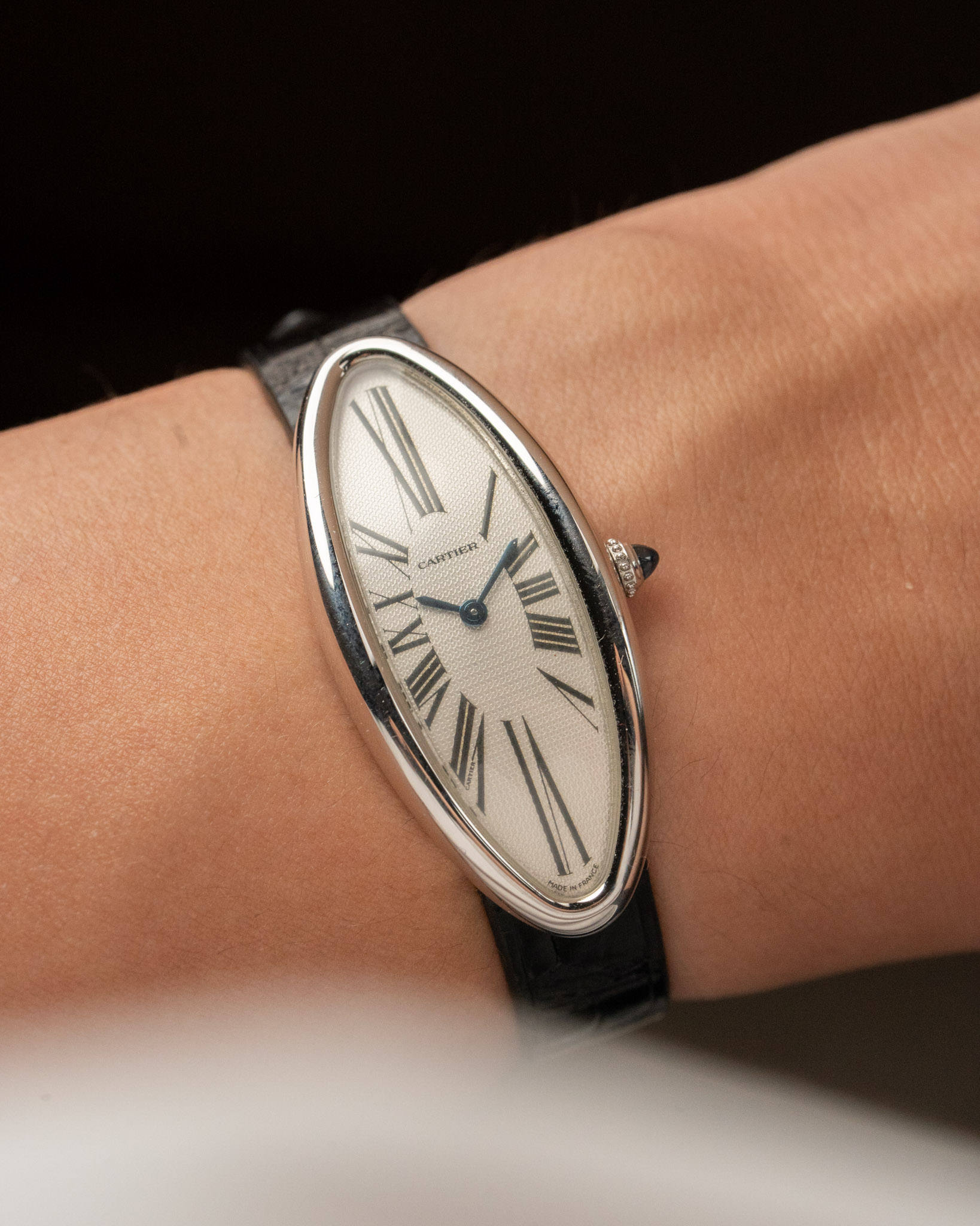 Cartier’s Baignoire (“bathtub”) is one of the brand’s most distinctive and enduring shapes, first sketched by Louis Cartier in the early 20th century. The Baignoire Allongée (“elongated bathtub”) variant features a stretched, elegant oval case that has become a symbol of timeless, sophisticated design.