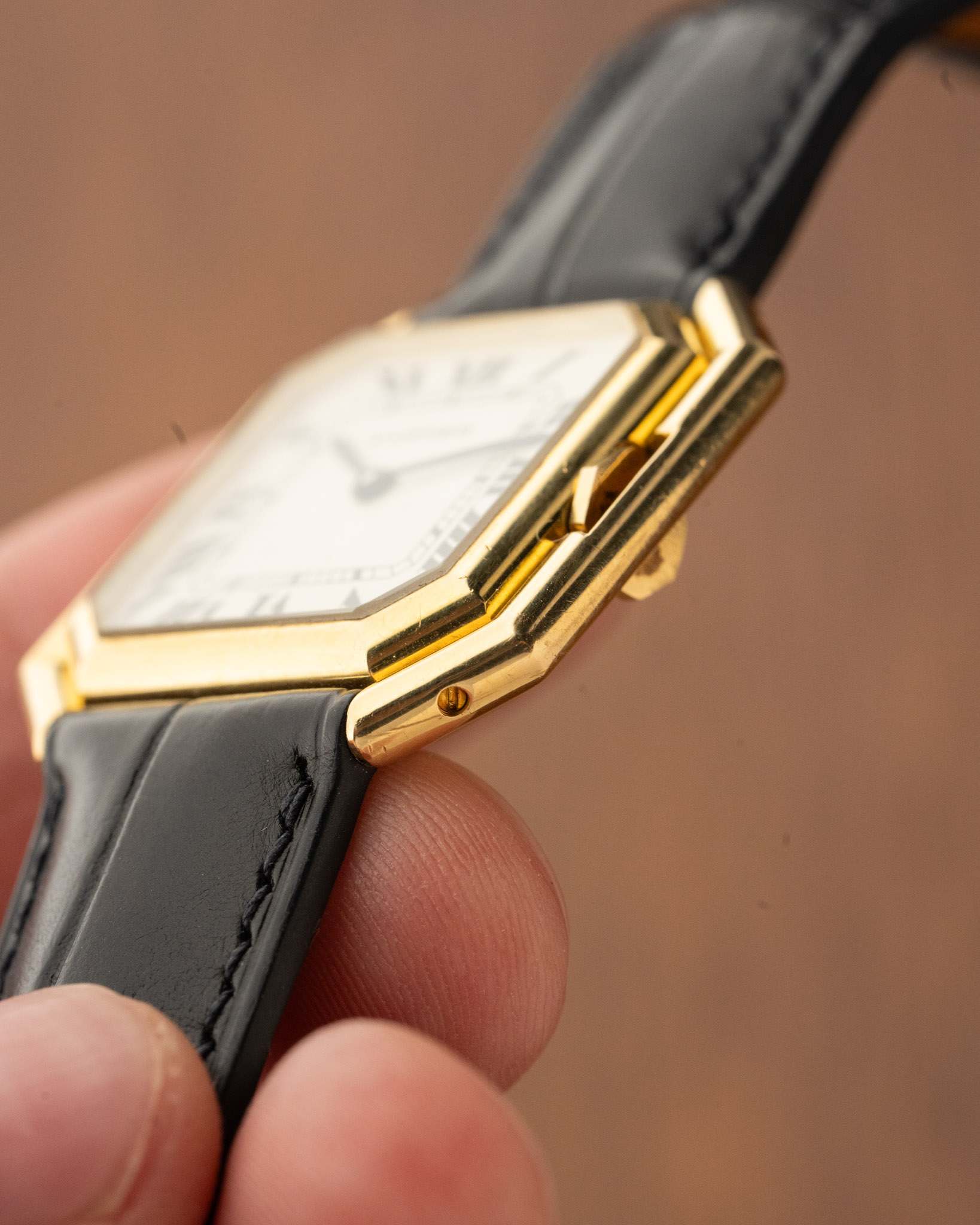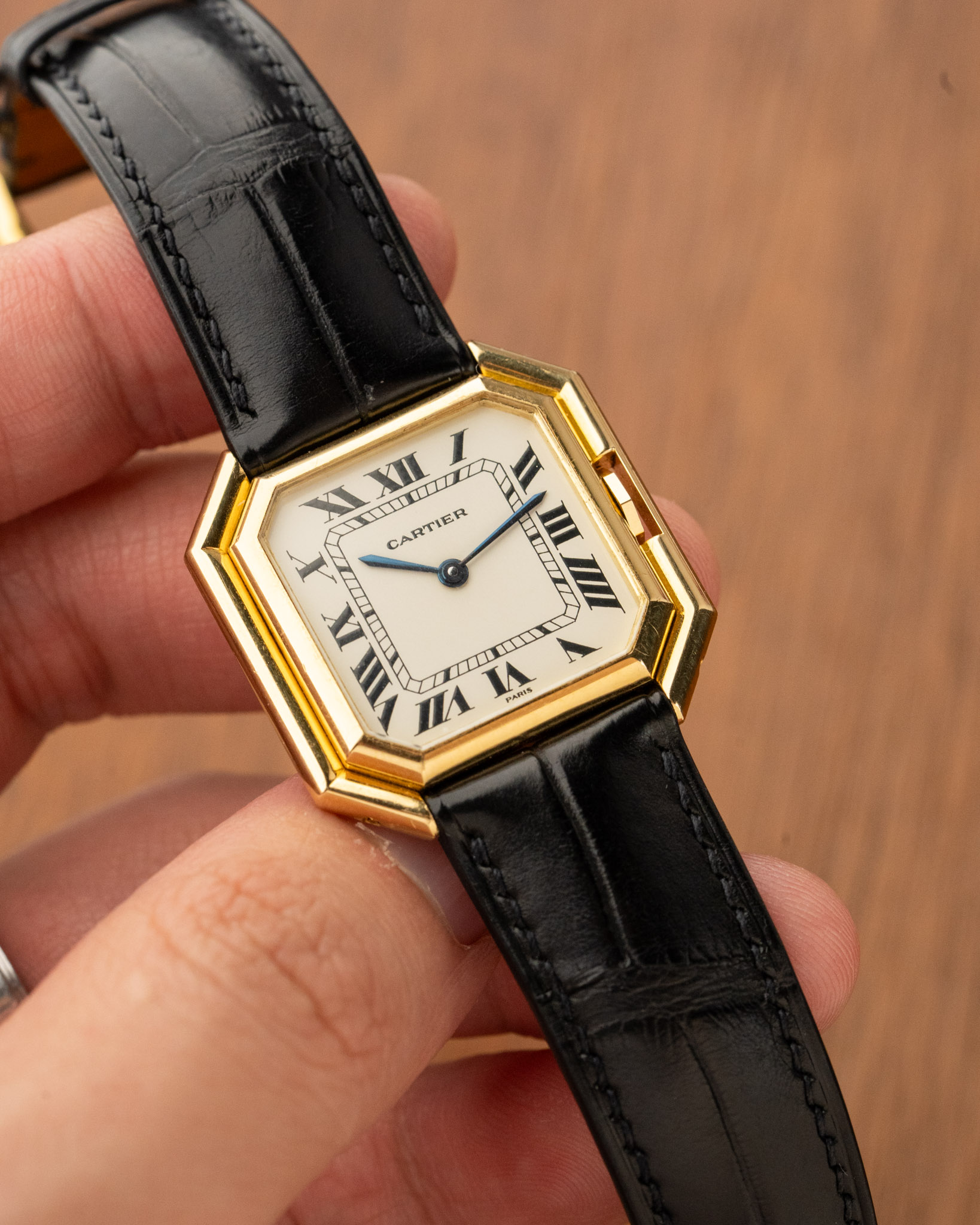 Cartier Ceinture collection, meaning “belt” in French, draws inspiration from the brand’s early 20th-century designs featuring cases resembling belt buckles. The tonneau-shaped case with its distinctive ribbed sides represents a less common but highly architectural part of Cartier’s watchmaking heritage, blending jewelry design with traditional watch forms.
