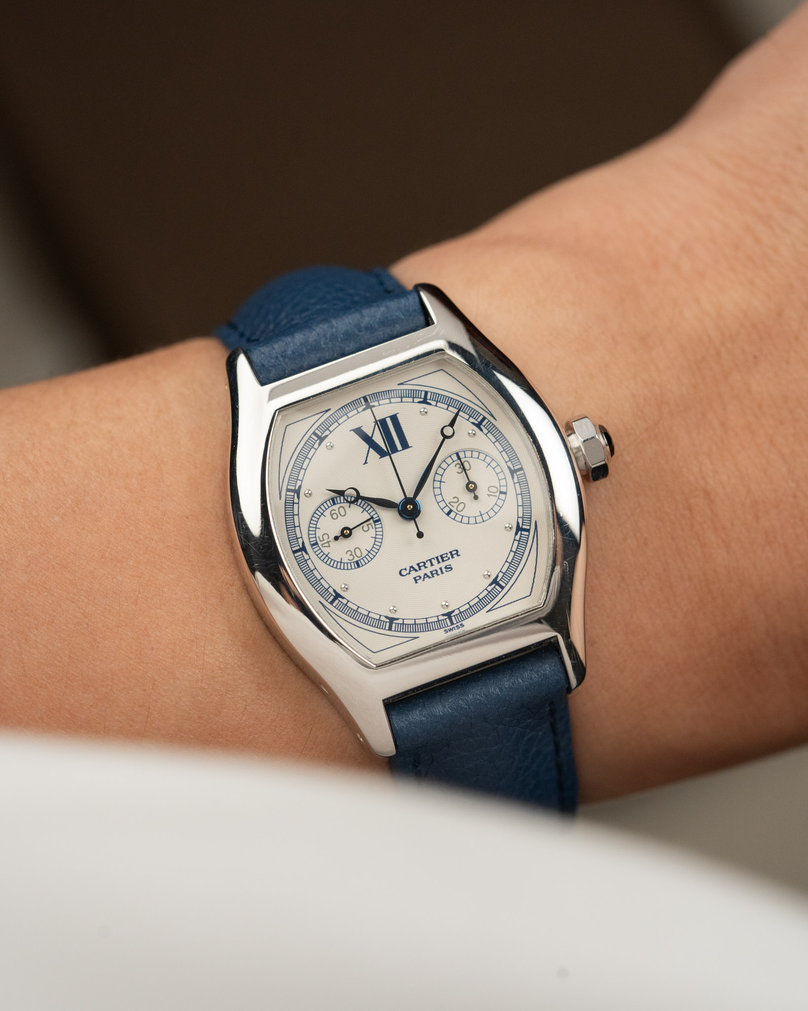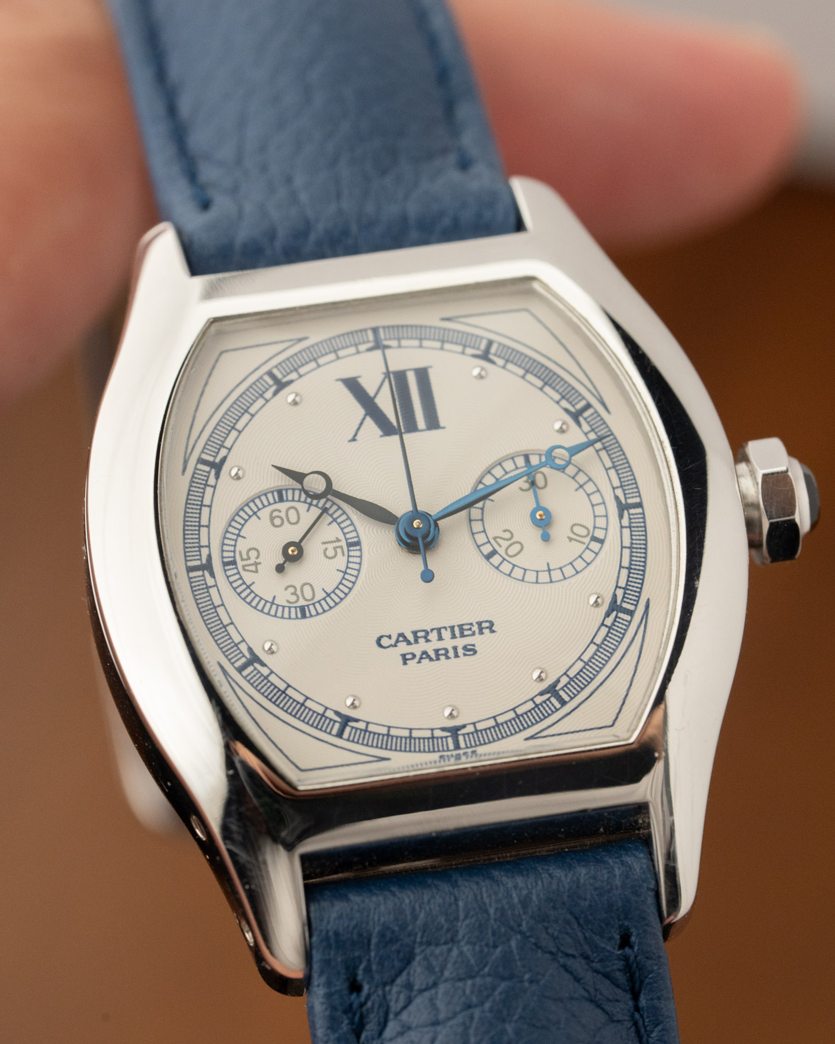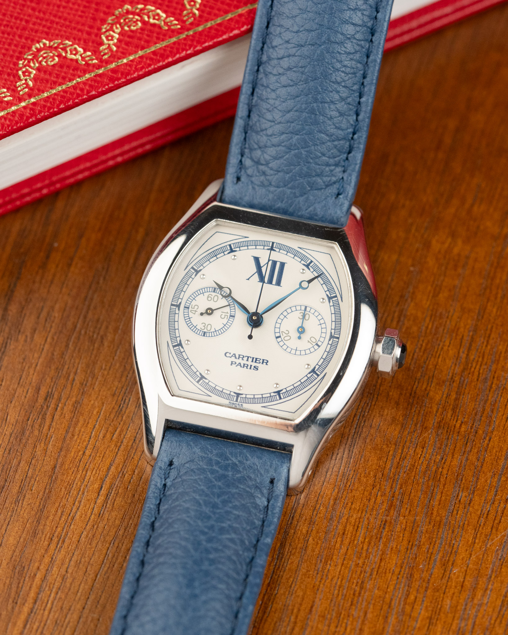 Hands down to me one of my all-time favourite CPCP releases, and to date, in my opinion, is the best variant of the monopusher, the Cartier CPCP Monopusher Chronograph. This manual wind watch is in excellent condition and is offered as a complete full set, which includes two additional spare straps and the original Collection Prive Inner and Outer box, with guarantees and booklets. The watch was checked and is running well with all functions of the monopusher in working order.