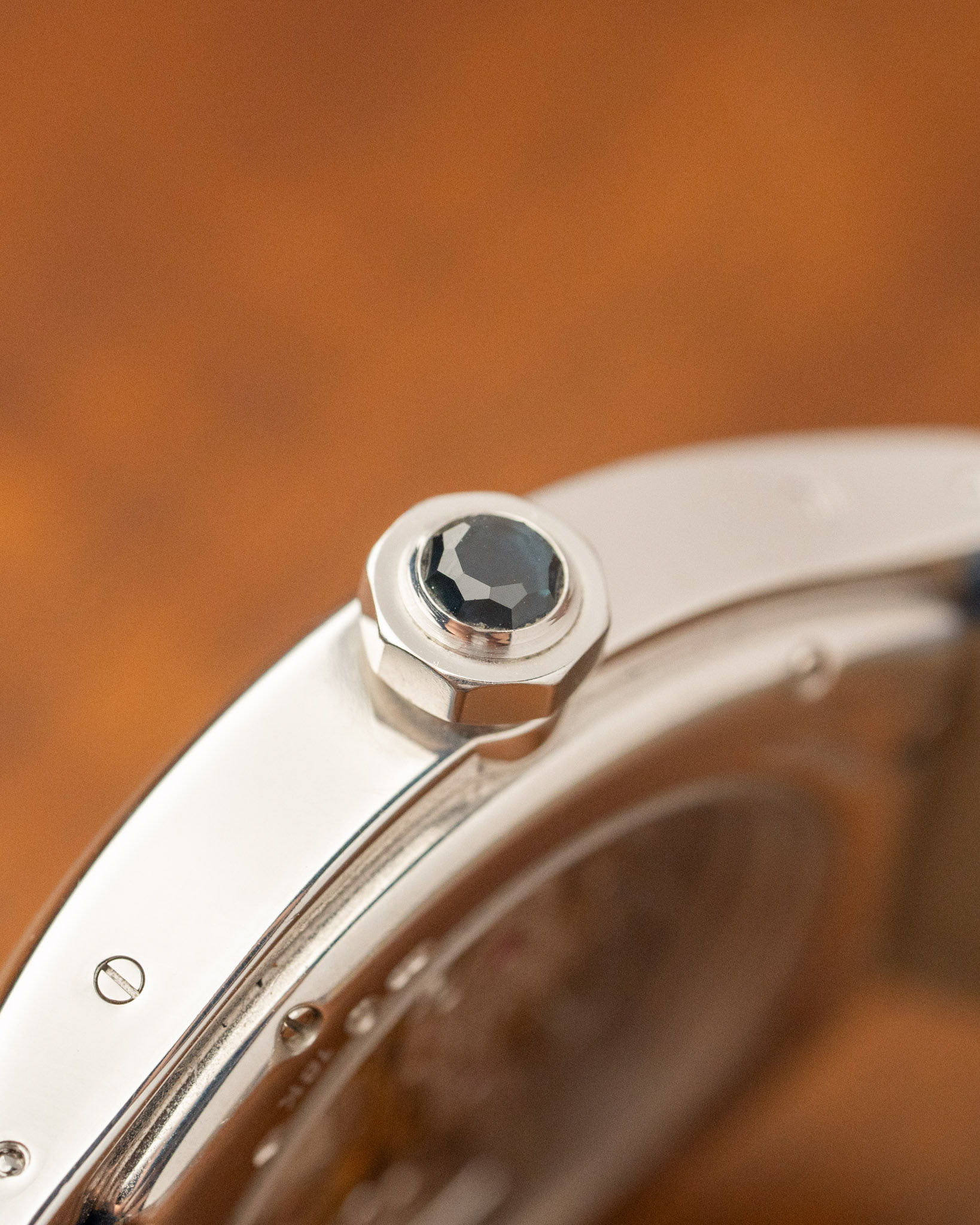 The movement in the 2396 Monopusher is the Calibre 045MC, which was notably developed by the collaborative manufacture THA Èbauche—founded in 1996 by the renowned independent watchmakers Vianney Halter, Denis Flageollet, and François-Paul Journe. In short, developed by three legendary names in the industry, Vianney Halter is a renowned independent watchmaker, Denis Flageollet, watchmaker and co-founder of De bethune and François-Paul Journe, who needs no introduction.