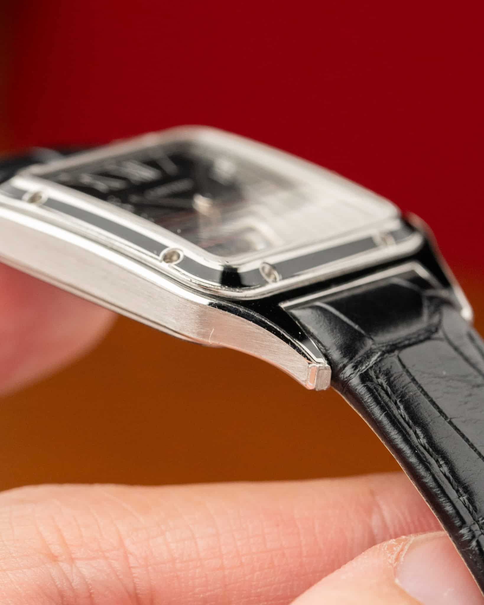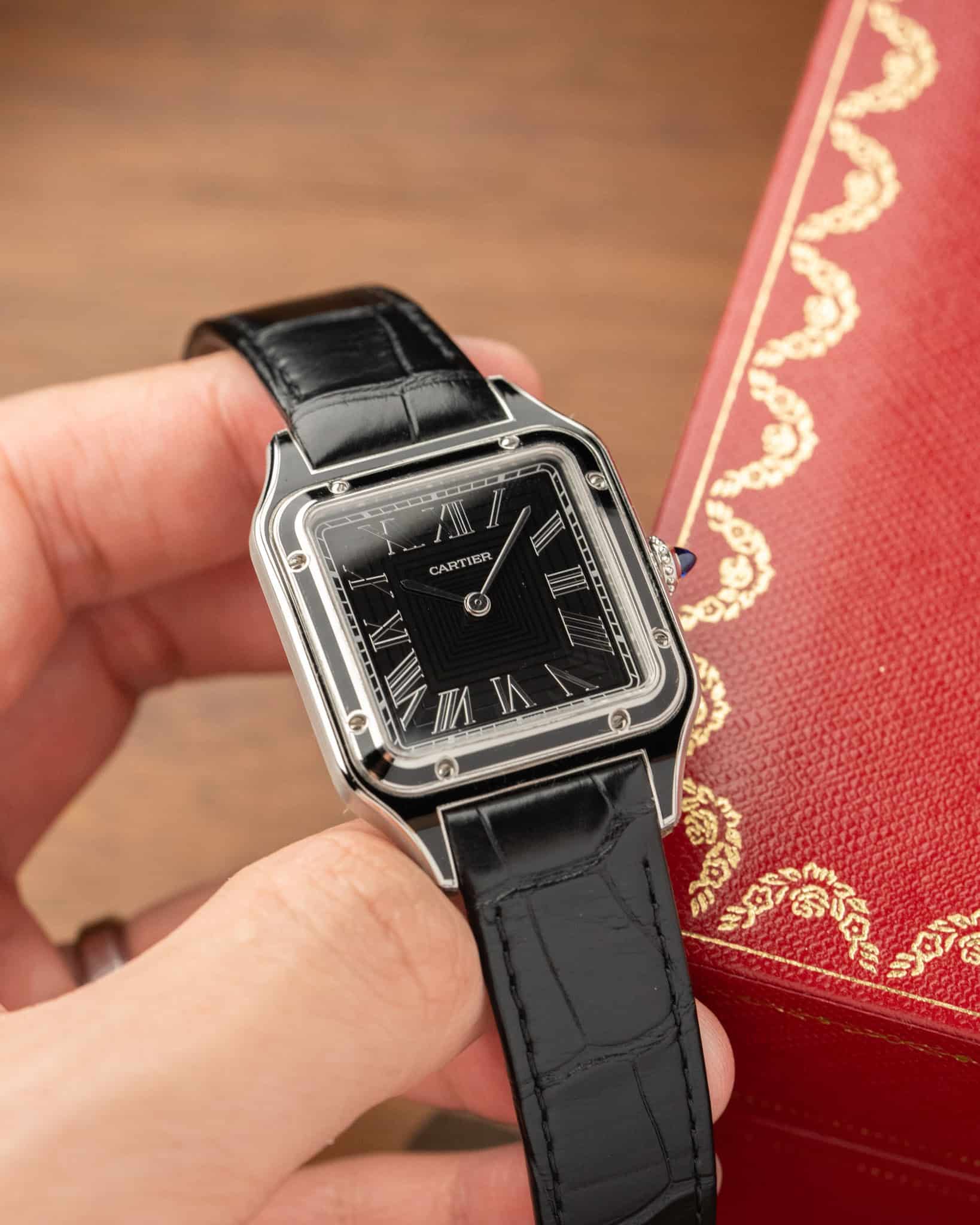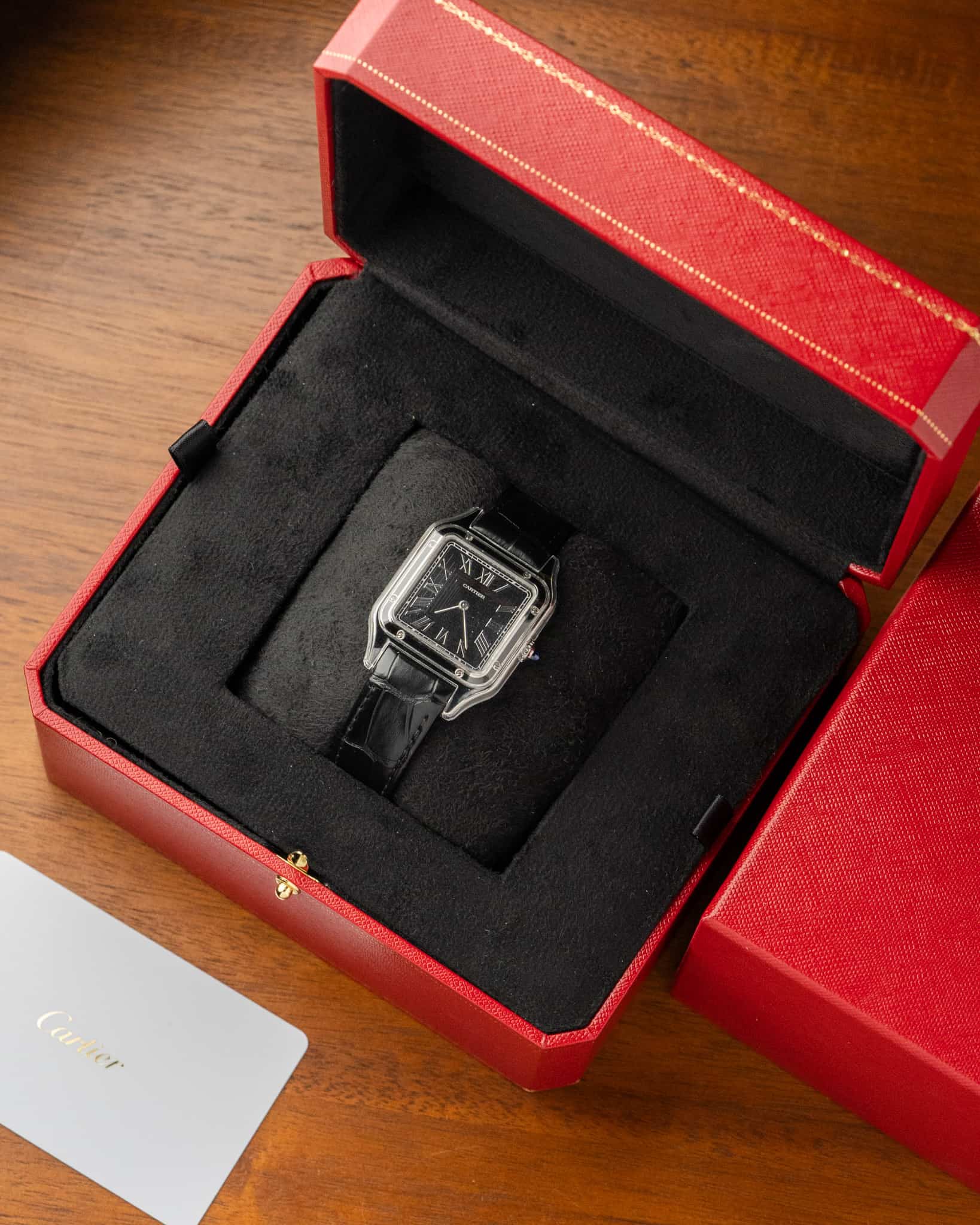 The Cartier Santos-Dumont offers a modern take on a classic, featuring an ultra-thin case and a striking high-shine black lacquer dial. Its design honours the original created for Brazilian aviator Alberto Santos-Dumont, comes with Noble Sticker Protections.
