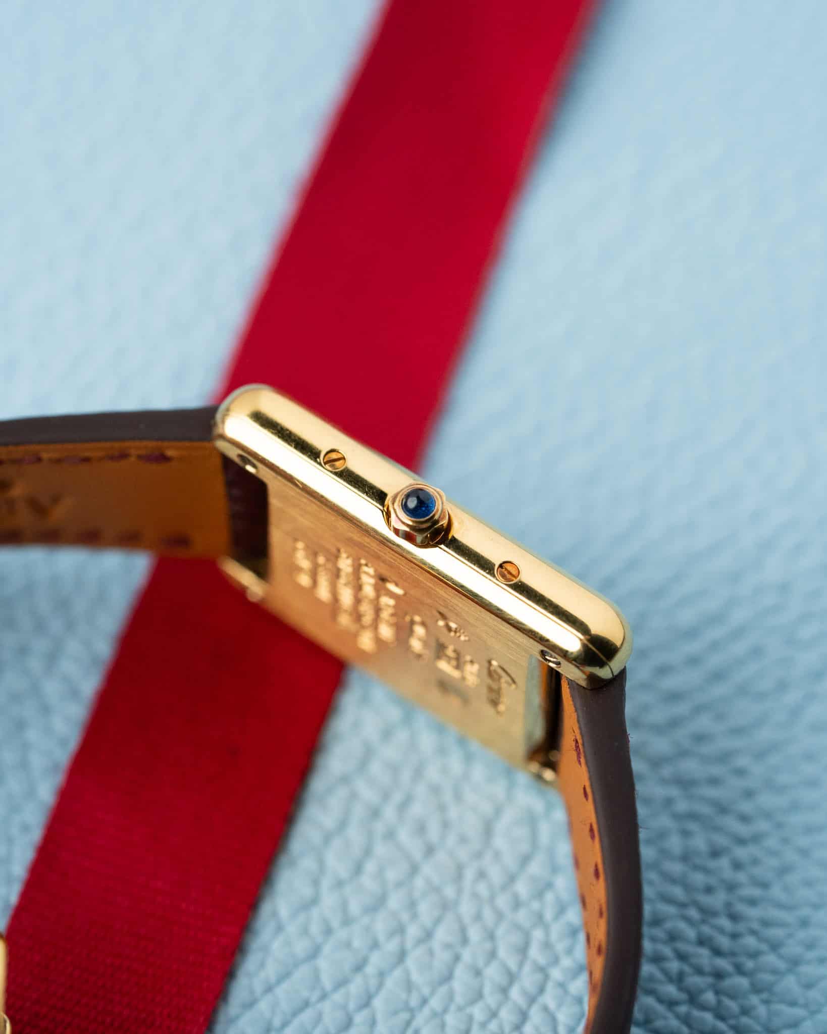 This 20x28mm miniature Tank exemplifies Cartier’s mastery of proportion, its compact size delivering quintessential Parisian elegance.