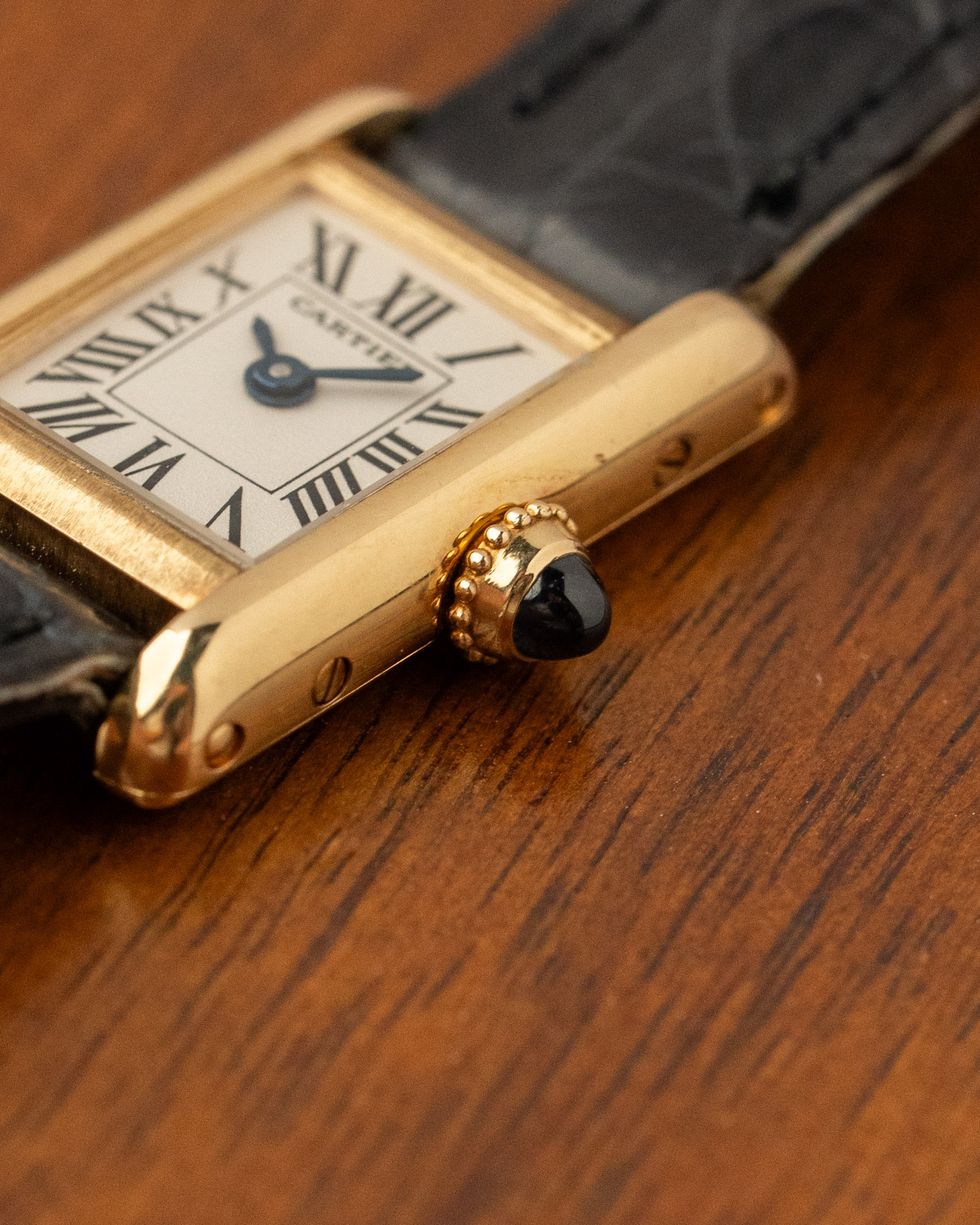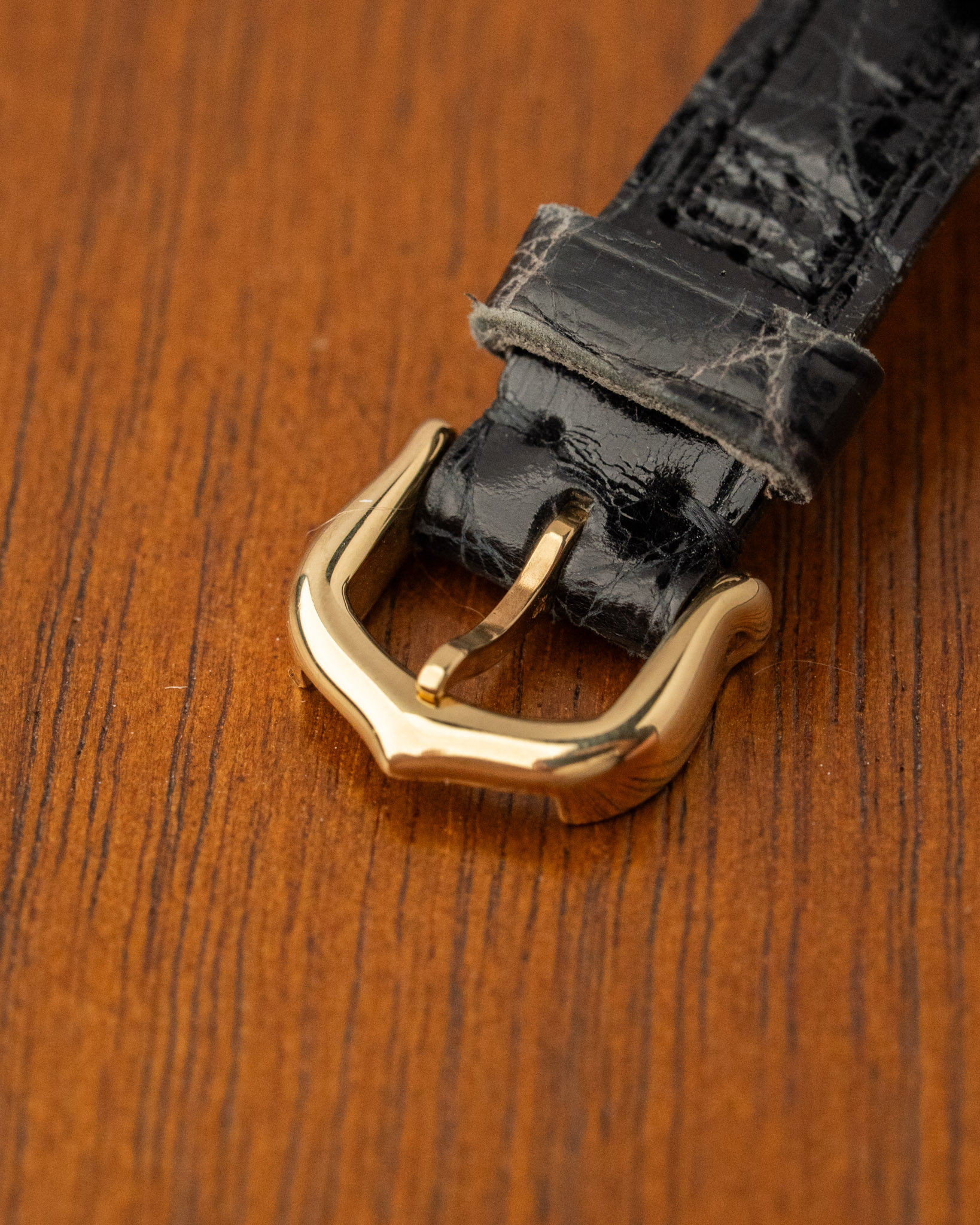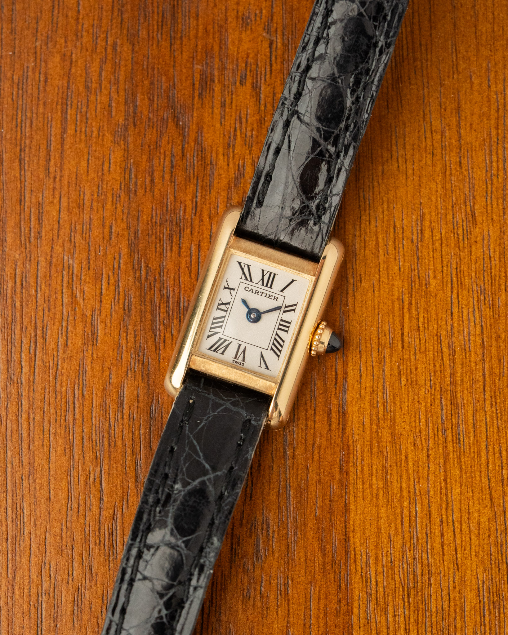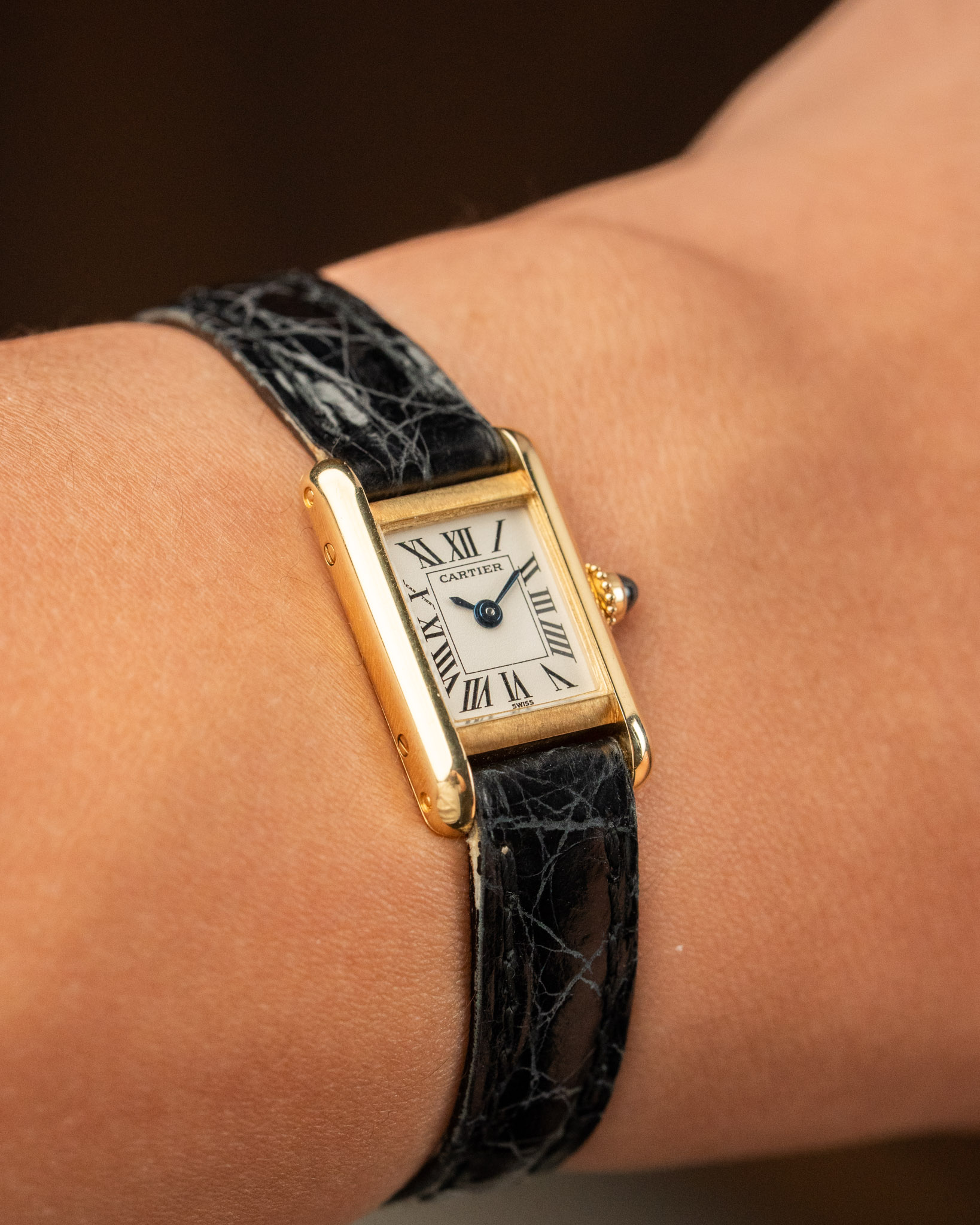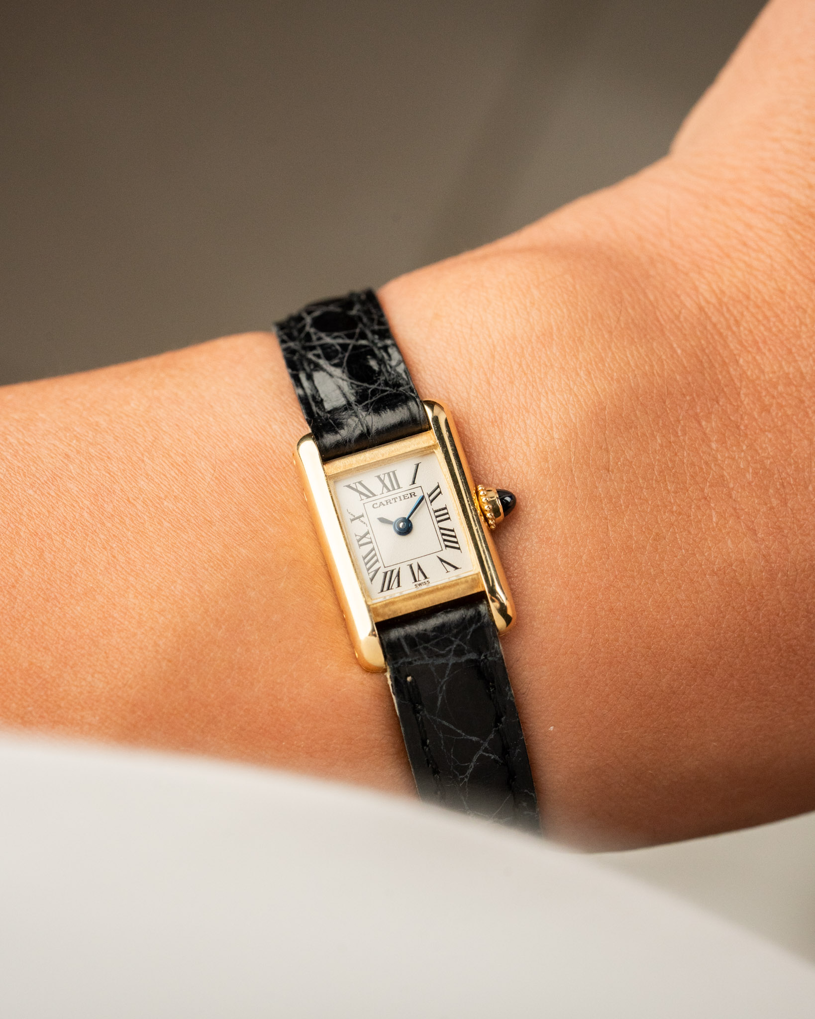 The Cartier Tank Louis, named after Louis Cartier, was introduced in 1922 and remains the cutest expression of the Tank design. The reference 1360 is a classic yellow gold model from the 1980s–90s, featuring the iconic Roman numerals, blued steel hands, and a discreet quartz movement. The Mini size offers a dainty, elegant presence.
