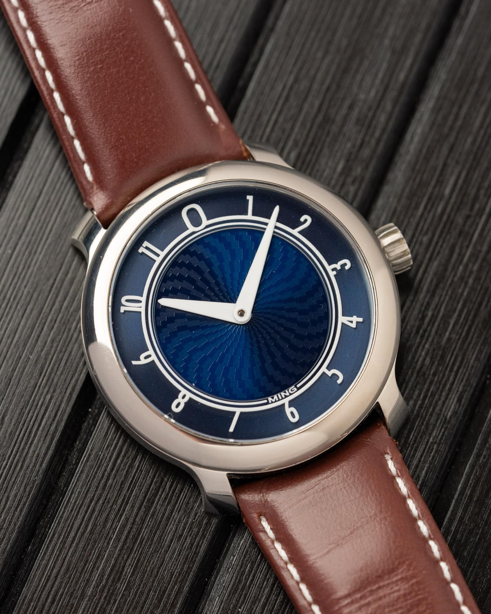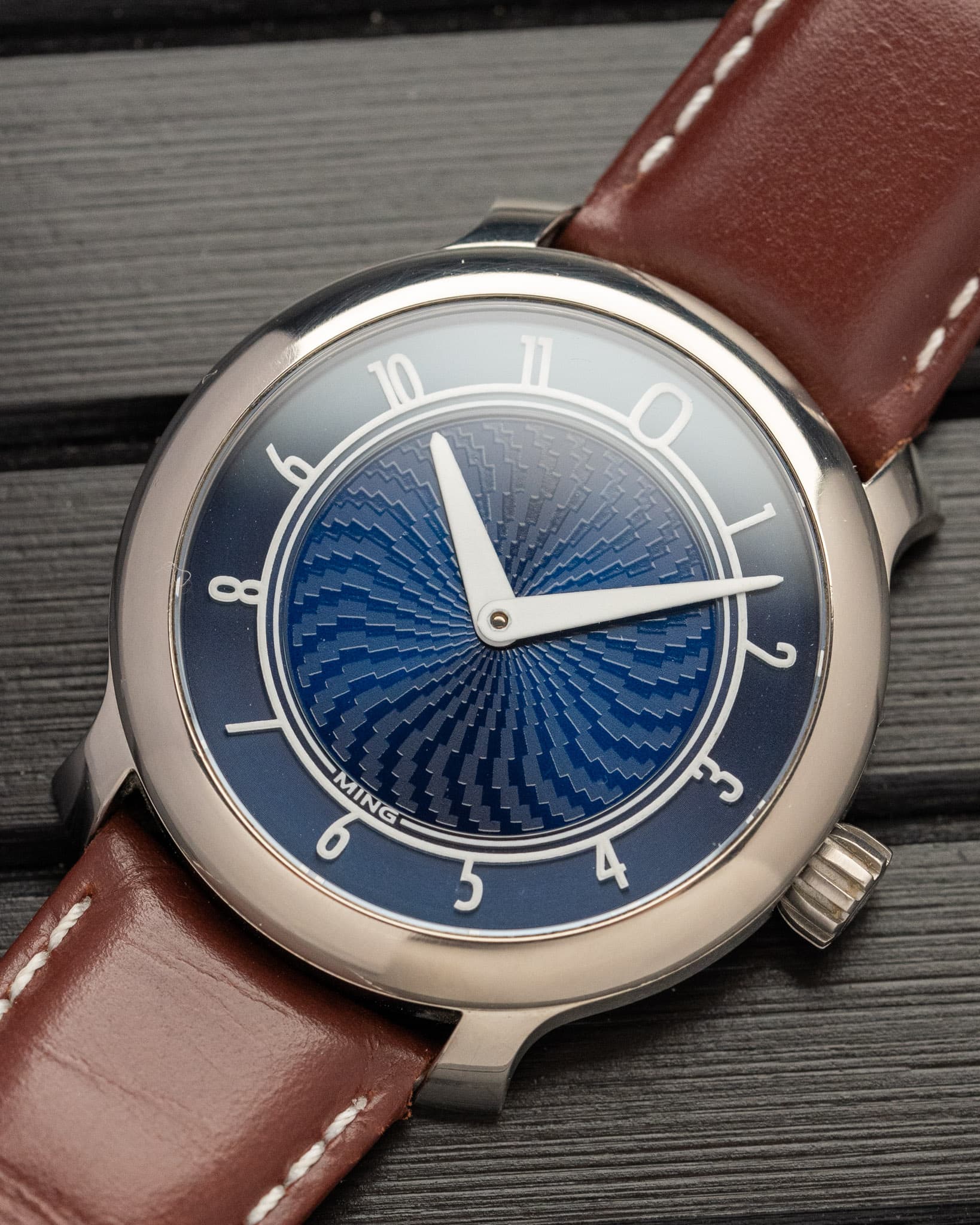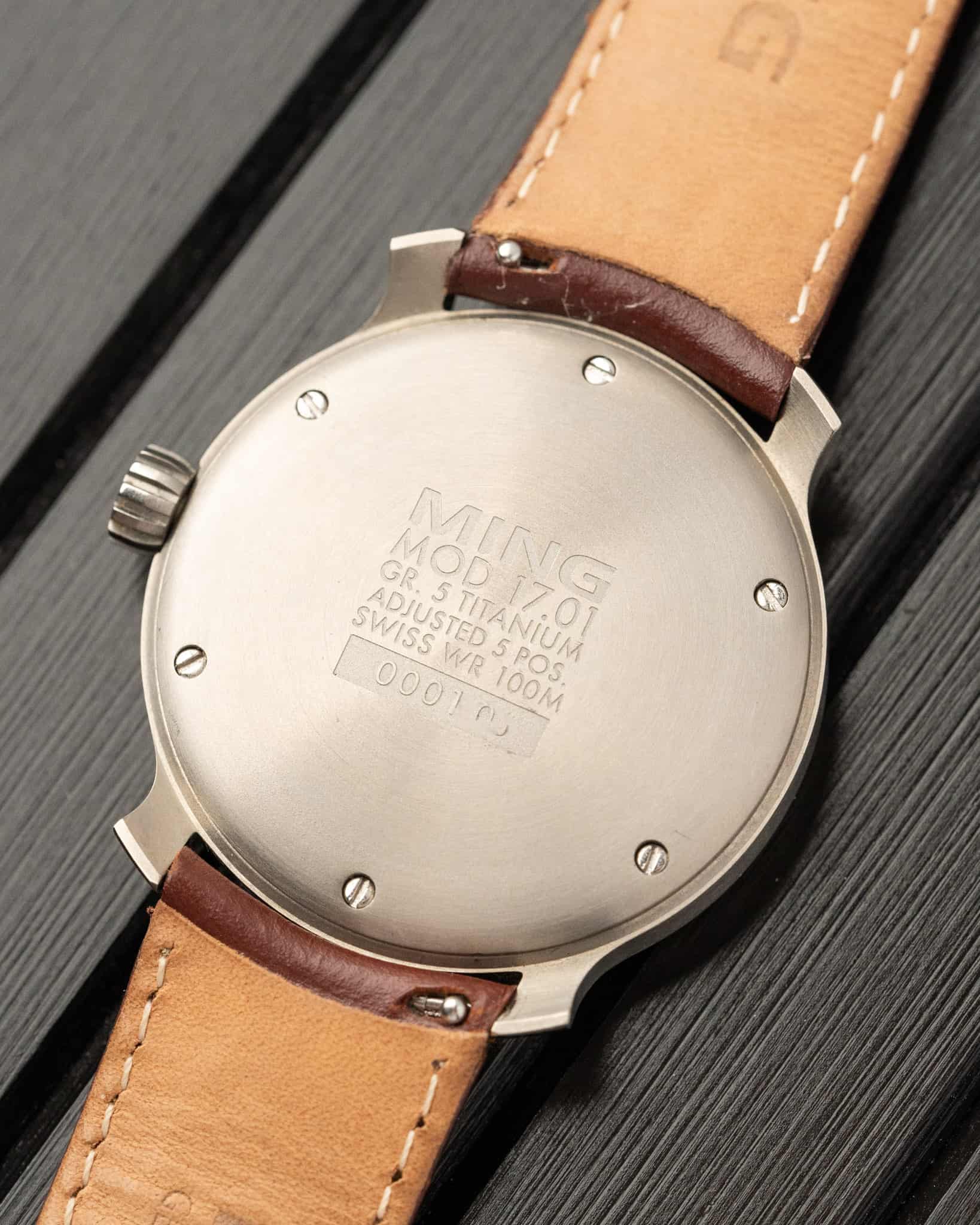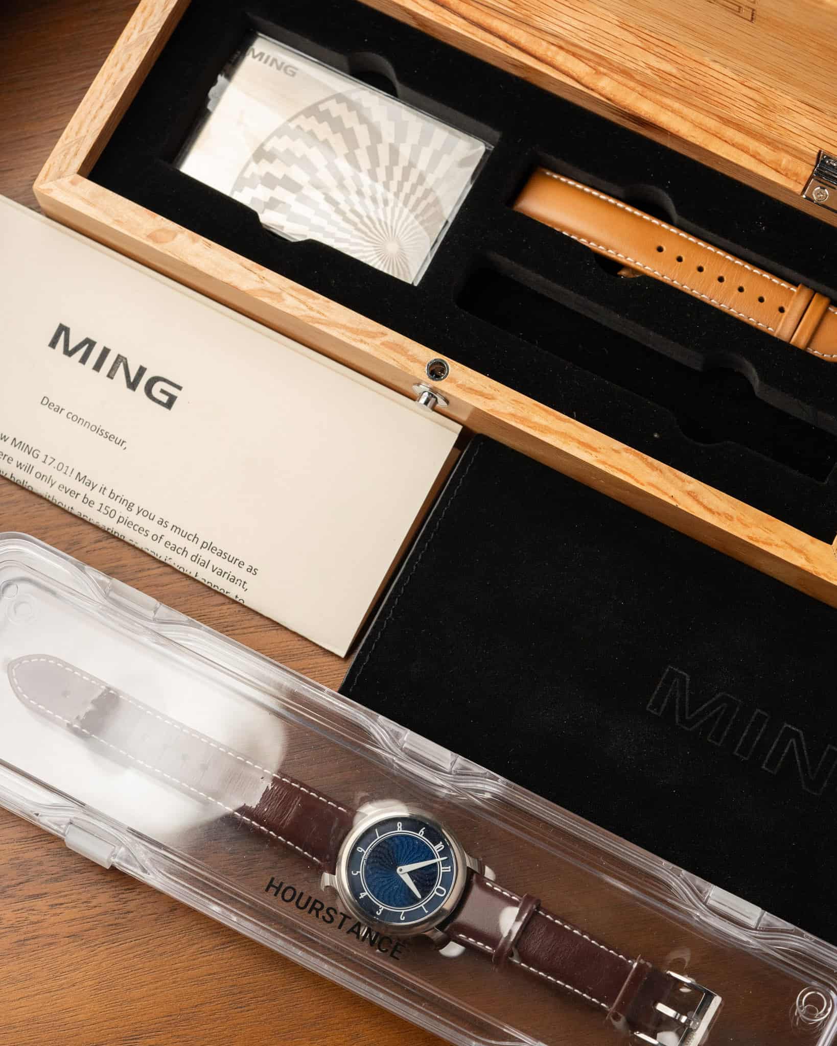 The First Ever Ref. 17.01 Blue Dial Ming, which started the brand and for good reason, was released in 2017 in a limited batch of 150. It features a beautiful light blue dial in a 38mm case made of Grade 5 titanium. This set comes with its box, paper, cards and both straps.