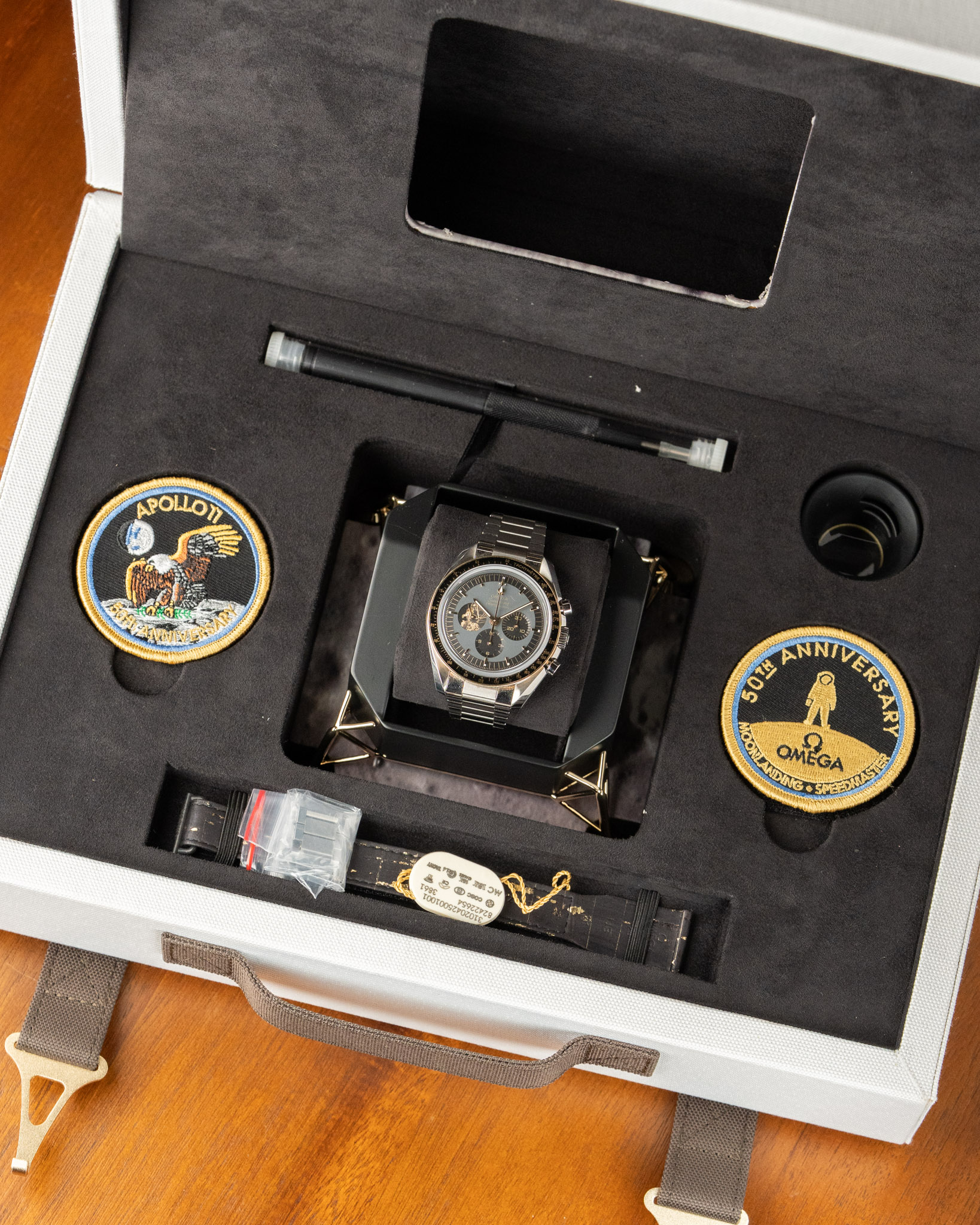 Released in 2019 to mark half a century since the first lunar landing, this Speedmaster is a faithful tribute to the historic 1969 gold BA145.022. The reference 31020425001001 is the first stainless steel model to incorporate Omega’s exclusive 18K Moonshine Gold and the updated calibre 3861, blending heritage with modern innovation. A total of 6,969 pieces were produced, echoing the year of the Moon landing.