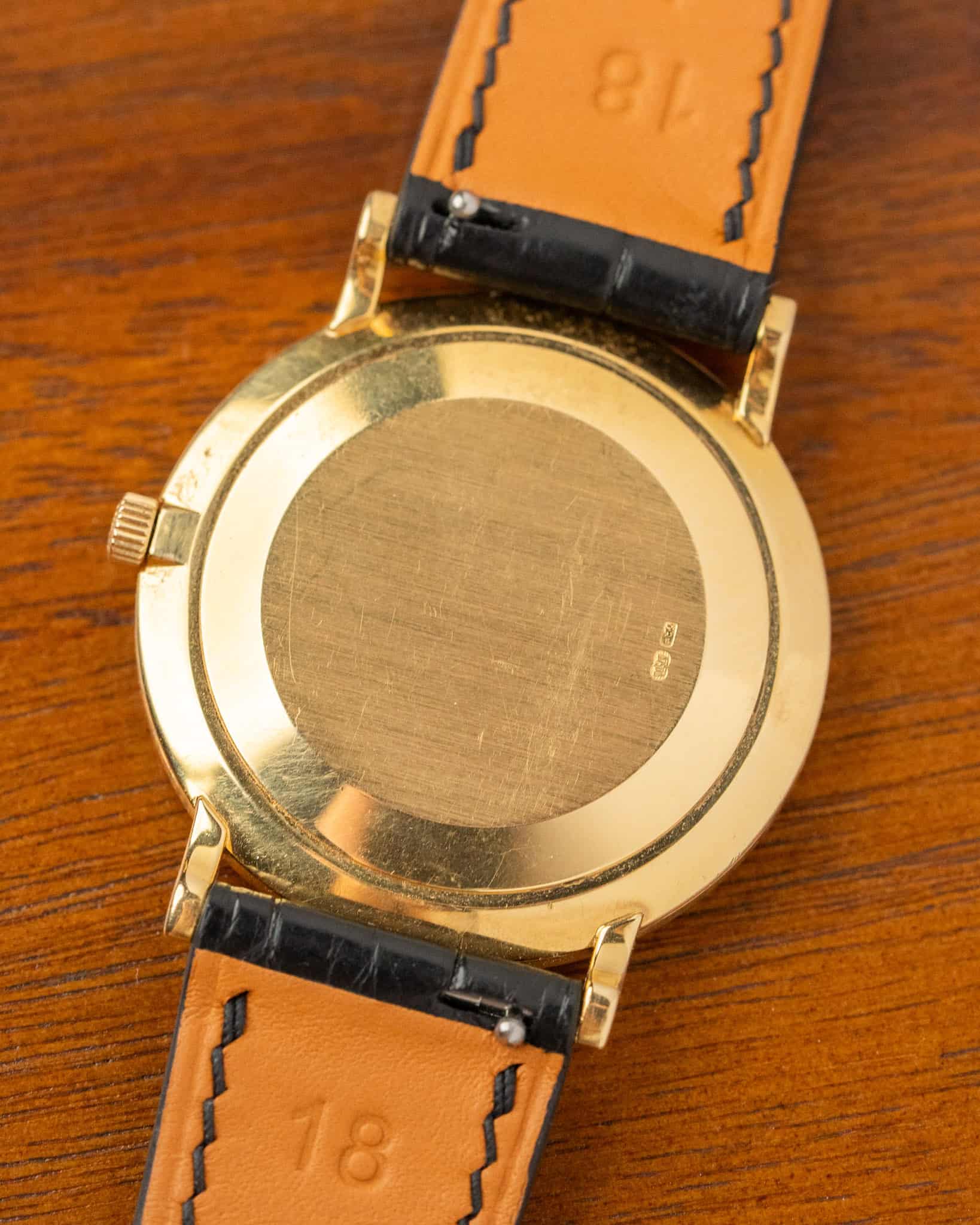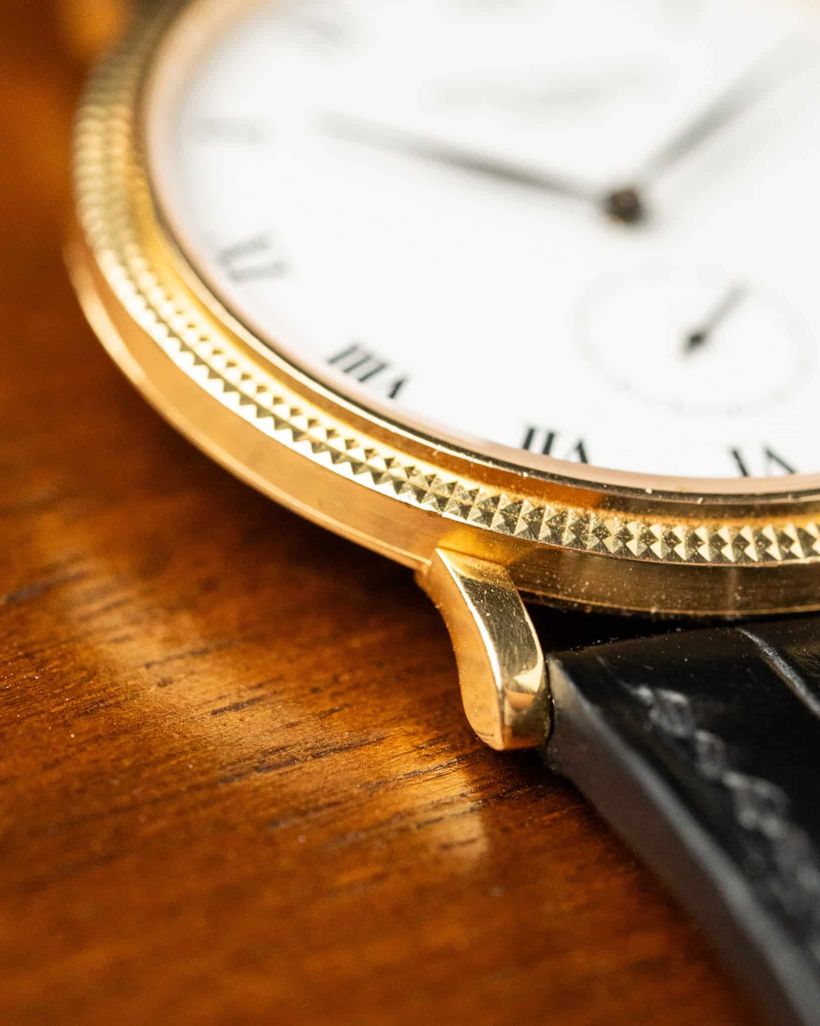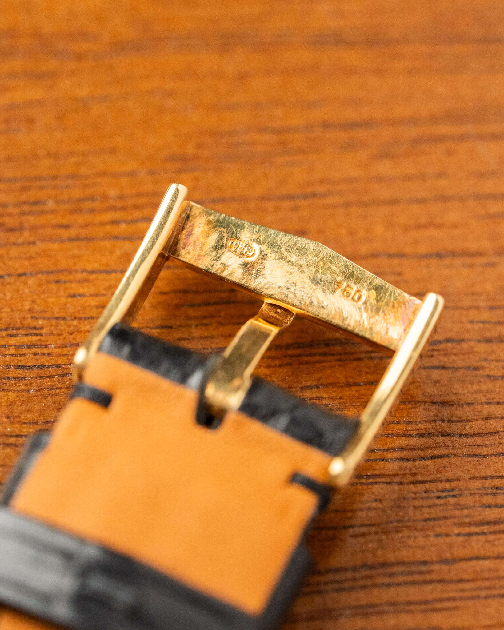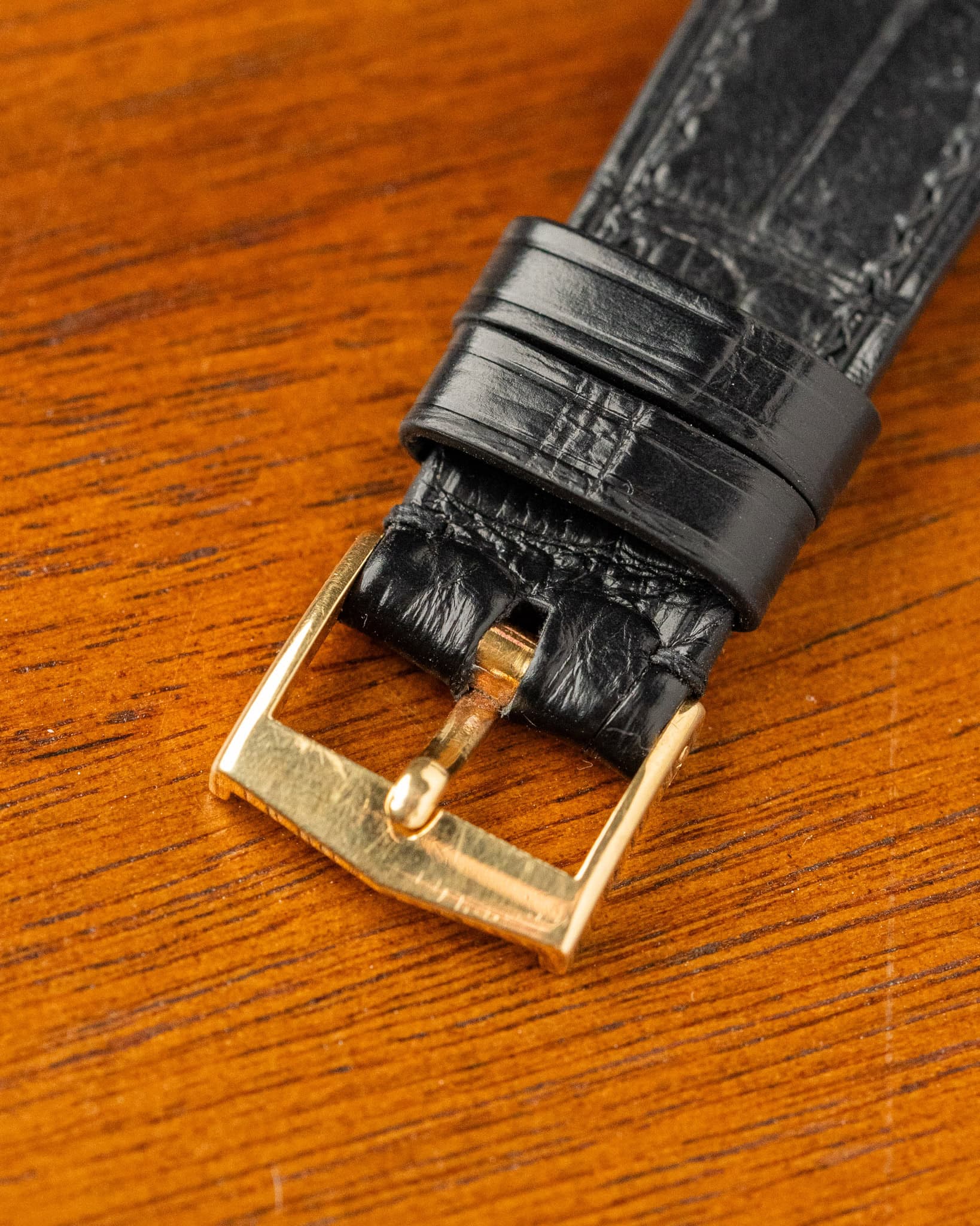 The classic Patek Philippe Calatrava 3919J in yellow gold. Features the iconic “Clous de Paris” bezel and a clean white enamel dial. Powered by a manual-wind movement and accompanied by its original papers, booklets, and buckle.